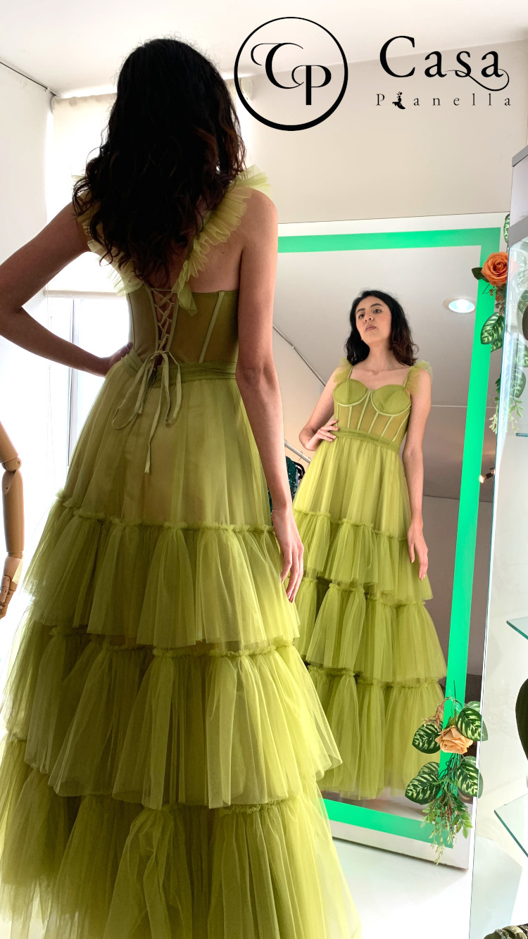 Vestido con olanes en falda y tirantes